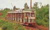 Street car, open top, electric, on street. "Snowdon" on name plate at front