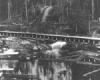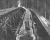 Log run close up view on mountain en route to logging mill operation that can seen in clearing behind trees. Bull River area |