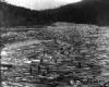 Log run and chutes on mountain shows logs entering water. Bull River area |