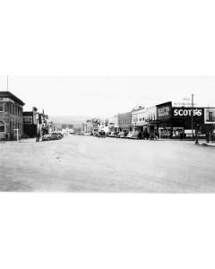 Accession: 1976.033.011 Object: photograph : b&w Title: East along Baker Street from CPR-YMCA, Cranbrook, BC Description: Reproduction photo looking east along Baker Street from CPR-YMCA, Cranbrook, BC Item Date: ca. 1942 Size: 11 X 18 cm Location: 1-1-1-59 Indexed In: Cranbrook » Street » By Name » Baker