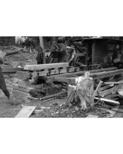 Accession: 1976.049.002 Object: photograph : b&w Title: Portable Sawmill Description: Photo of portable sawmill