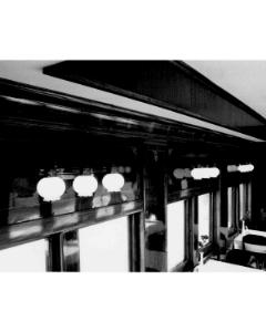Accession: 1982.047.011 Object: photograph : b&w Title: Panelling details 'Argyle' interior Description: Item Date: Mar. 1982 Size: 10 x 13 cm Location: 1-2-5-56 Indexed In: Railroad » Rolling Stock » Passenger » Diner » Argyle » After Restoration