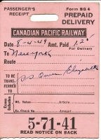 Click to Enlarge Accession: 1987.003.007 Object: PASSENGER RECEIPT Title: Travel the World Description: For baggage #5-71-41 (CPR) Location: 1-3-6-14 Indexed In: Railroad » Publication » Forms » Receipt
