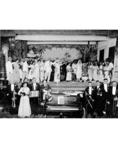 Accession: 1988.105.001 Object: PHOTO Title: 'The Cinalee' cast (1912) Description: People on a stage, some with instruments