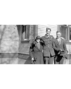 Accession: 1990.108.023 Object: photograph : b&w Title: Cranbrook, B.C. Description: Mr & Mrs Roberts & Melvin (1942)