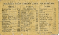 Reverse Side is Mileage ChartSize: 6 x 9 cm Location: MSS.0106.0013 Indexed In: Cranbrook » Business » Zenith Cafe