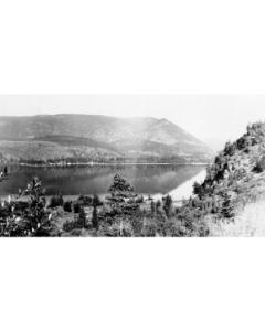 Accession: 1995.005.081 Object: Photograph : b&w Title: Collection of Jacob (Jack) Ritter Description: A placid lake set between mountains Size: 7 x 12 cm Location: 1-3-3-41 Indexed In: Cranbrook » Personalities » Letter R » Ritter, Jacob (Jack)