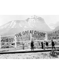 Click to Enlarge Accession: 1999.037.012 Object: photograph : b&w Title: Canadian Rocky Mountains Description: 'The Great Divide' Location: 1-3-6-6 Indexed In: Physical Features » Great Divide