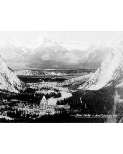 Accession: 1999.037.015 Object: photograph : b&w Title: Canadian Rocky Mountains Description: 'Bow Valley & Banff Springs Hotel' Location: 1-3-6-6 Indexed In: Cities » Alberta » Banff » Building