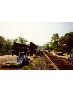 Accession: 1999.042.058 Object: PHOTO Title: Description: CPR bridge replacement at Bala Bay, ON (1991)
