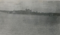 Accession: 2003.037.001.011 Object: Photograph : b&w Title: MacPherson and Bridges Family Photo Albums Description: The opposite shore of this lake, appears to be a small castle, or large mansion. Size: 24 x 40 cm Location: PHOTO.OS.0032.0036 Indexed In: Cranbrook » Personalities » Letter B » Bridges family