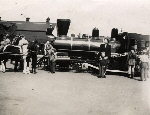 Accession: 2003.039.002 Object: photograph : b&w Title: Cranbrook, B.C. Description: Cranbrook parade, CPR float late 1940's Unidentified people, possibly the Minifie family. from Minifie photo album. Size: 8 x 6 cm Location: 1-3-8-3 Indexed In: Railroad » Company » CP Rail