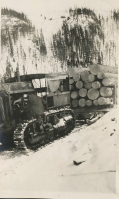 Accession: 2010.006.005 Object: photograph : postcard, b & w Title: Ross Saskatoon Mill, Waldo, B.C. Description: First logging haul-cat at White Sulpur (?) in BC Item Date: 1923 Size: 8.5 x 13 cm Pages: 1 Location: 1-5-8-6 Indexed In: Industry » Forestry » Companies & Mills » Ross Saskatoon