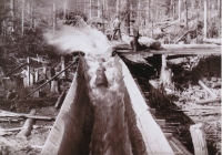 Accession: 2011.002.011 Object: textual record : photo's and history Title: Bull River and Yahk Logging and Tie-Cutting Photograph - Hawkins Creek Description: 5x7 B/W photo of logging and tie-cutting operations in Bull River and Yahk. Print made from negative. Hawkins Creek - Rolling logs into flume Item Date: ca 1900's - 1934 Size: 18 x 12.5 cm Pages: 1 Photographer: Clark, Brian Location: 1-5-8-12 Indexed In: Cranbrook » Industry