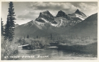Accession: 2011.044.012 Object: textual record : postcard Title: Various Postcards of CPR and Physical Features - Along the Line of the Canadian Pacific - Three Sist Description: Various Postcards of CPR and Physical Features - Along the Line of the Canadian Pacific - 47. Three Sisters, Banff Postcard - B/W with thinner white border Item Date: 1940 - 1944 Size: 14 x 9 cm Pages: 1 Photographer: Harmon, Byron Location: 1-5-8-16 Indexed In: Railroad » View