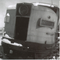 Accession: 2012.002.006 Object: textual record : photo locomotive engine Title: CPR Loco Shells, St Lawrence Iron & Metal, Montreal - 9 B/W Photographs - Front Close-up Description: 9 B/W Photographs - Canadian Pacific Diesels, Front Close-up with notation on back of photo reading "4098 Louie's-Mtl, 12/63, Don Young". Item Date: December 1963 Size: 10.25 x 10 cm Photographer: Young, Don Location: 1-5-8-19 Indexed In: Cities » Quebec » Montreal