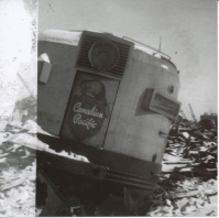 Accession: 2012.002.008 Object: textual record : photo locomotive engine Title: CPR Loco Shells, St Lawrence Iron & Metal, Montreal - 9 B/W Photographs - Front End Close-up Description: 9 B/W Photographs - Canadian Pacific Diesels, Front End Close-up with notation on back of photo reading "4098 Louie's-Mtl, 12/63, Don Young". Overexposed on left side of photo. Item Date: December 1963 Size: 10.25 x 10 cm Photographer: Young, Don Location: 1-5-8-19 Indexed In: Cities » Quebec » Montreal