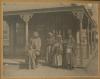 Three women, one man and one child in native dress standing on walkway |