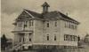 King Edwards School front and left side of school, fireplace chimney on left side of house, cement retaining wall around house with small wrought iron fence on top of retaining wall, telephone pole on left of house at Baker Hill