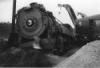 CP Rail line near Wardner BC, Steam Locomotive #2380, front end view, shows CP crane just prior top hooking onto locomotive. |