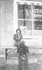 Cranbrook, B.C. B&W of Dora Kolisnek sitting in front of the Victoria Hotel, Cranbrook sometime between 1920 - 1943