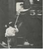 Wooden handled(short), metal bracket with spring clips each side(bamboo forks missing) , red painted end . Used to deliver train orders to trainman on caboose. |