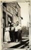 B&W photo from MacCartney family albums. Original photos kept by Dan MacKinnon. Copies only in archives. Photos taken in and around Yahk, BC during the early 1920's and 30's. Stan MacCartney standing with family on steps of General Store, Yahk |
