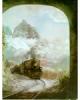 Reproduction (colour plate) of a photograph of BCPM train at Fort Steele