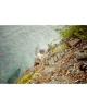 Train wreck at Kootenay Lake. A freight car is seen at the base of a rocky slopePhotograph : col