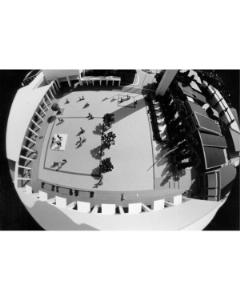 Accession: 1976.012.032 Object: photograph : b&w Title: Central Court, Cranbrook, BC Description: Bird's Eye photo of Central Court from Heritage Square model, Cranbrook, BC Size: 11 X 8 cm Location: 1-1-1-19 Indexed In: Cranbrook » Building » Public » City Hall