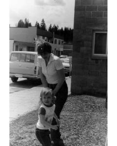 Accession: 1976.036.006 Object: photograph : b&w Title: Gerri Atchison and daughter, Jennifer Studio Renovation, Cranbrook, BC Description: Photo of Gerri Atchison and daughter, Jennifer