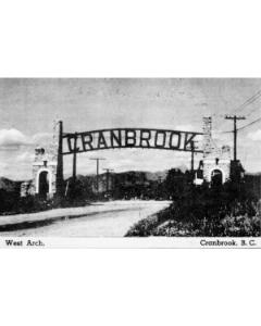 Accession: 1976.037.011 Object: photograph : b&w Title: West Arch Van Horne Street, Cranbrook, BC Description: Photo of West Arch on Van Horne Street, Cranbrook, BC