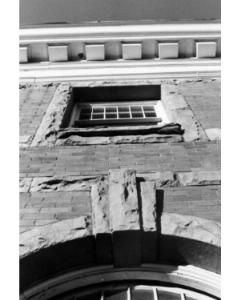 Accession: 1976.038.042 Object: photograph : b&w Title: Imperial Bank, Cranbrook, BC Description: Photo of Imperial Bank facade detail, Cranbrook, BC