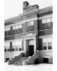 Accession: 1976.038.052 Object: photograph : b&w Title: Central School, Cranbrook, BC Description: Photo of Central School South Wing entrance, Cranbrook, BC