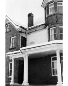 Accession: 1976.038.064 Object: photograph : b&w Title: Parkin Manor, 324 10th Avenue S, Cranbrook, BC Description: Photo of Parkin Manor close-up of porch (upper verandah removed in 1975), 324 10th Avenue S, Cranbrook, BC