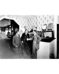 Accession: 1976.062.001 Object: photograph : b&w, mounted Title: Cranbrook Hotel, Front Desk, Cranbrook, BC Description: Photo of Cranbrook Hotel Lobby, Front Desk