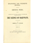 Accession: 1977.030.012 Object: book : hardcover Title: Engineers' & Firemens" Manual- General Index Description: 'The Science of Railways' Vol XII--Resume of the 12 vol. to this point, some engravings. Index takes up at least half of the volume.