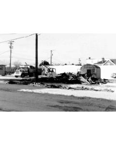 Accession: 1977.041.001 Object: photograph : b&w Title: Demolition of Cranbrook Television Building, Cranbrook, BC Description: Photo of demolition of Cranbrook Television Building, Cranbrook, BC