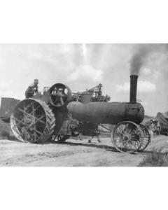 Accession: 1977.045.001 Object: photograph : b&w Title: Large Steam Operated Tractor Description: Photo of large steam operated tractor