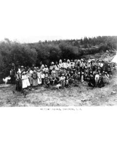Accession: 1978.032.021 Object: postcard : b&w Title: Kootenay Indian Gathering at Cranbrook, BC Description: Photo of Kootenay Indian gathering at Cranbrook, BC