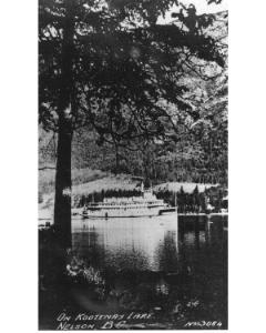 Accession: 1978.166.008 Object: photograph : b&w Title: Early Sternwheeler on Kootenay Lake, Nelson, BC Description: NO. 3084 Item Date: before 1932 Size: 17 x 11 cm Location: 1-1-8-31 Indexed In: Transportation & Travel » Boats & Boating » Inland