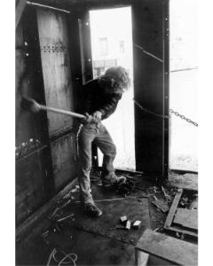 Accession: 1978.205.010 Object: photograph : b&w Title: Argyle During Restoration Description: Exterior cut-out end