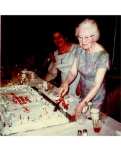 | 1978.237.008 » Cutting 60th Anniversary Cake, Queen Alexandria Loge #424 |