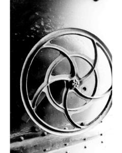 Accession: 1979.048.008 Object: photograph : b&w Title: Rutherglen on Arrival at CRM Description: Rutherglen on arrival at CRM showing brake wheel