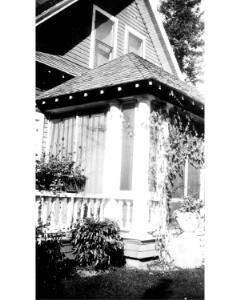 Accession: 1979.085.001 Object: photograph : b&w Title: Murray House at 225 - 11th Ave. S., Cranbrook, BC Description: close up of front porch and face of house Item Date: ca. 1920 Size: 12 x 8 cm Location: 1-2-2-90 Indexed In: Cranbrook » Building » Residence » By Builder » Murray