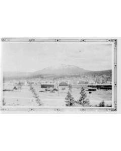 Accession: 1980.075.010 Object: photograph : b&w Title: Cranbrook, BC Description: View from Moir Park showing Ice House & Station. Cranbrook Mountain in background. Copied from post card.