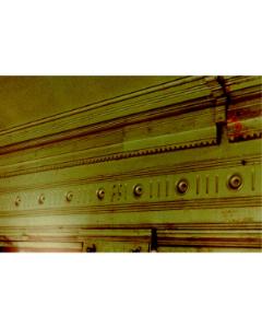 Accession: 1980.079.002 Object: photograph : col. Title: Interior Detail, Car #52 Description: Closeup of Painted Wooden Panel Size: 9 x 13 cm Location: 1-2-4-48 Indexed In: Railroad » Rolling Stock » Passenger » Coach » Car #52