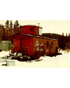 Accession: 1980.079.003 Object: photograph : col. Title: CPR Caboose #436791 Description: In original location in Blairmore, AB Size: 9 x 13 cm Location: 1-2-4-49 Indexed In: Railroad » Rolling Stock » Freight » Caboose