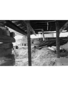 Accession: 1983.027.010 Object: PHOTO Title: Baker Home Restoration Description: Baker Home underneath lifting in progress, view to east