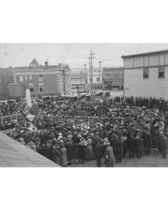 Accession: 1983.056.001 Object: PHOTO Title: A Gathering at the Cenotaph Description: Cranbrook remembrance gathering at cenotaph